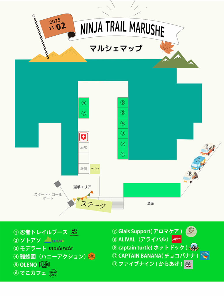 当日会場には、キッチンカー3店舗をはじめトレランショップや各メーカーさんに出店いただくことになりました。